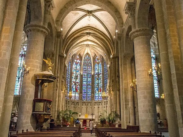 The Basilica of Saint-Nazaire is a must-see site within the medieval city walls that boast beautiful Romanesque and Gothic architecture as well as beautiful stained glass to admire.