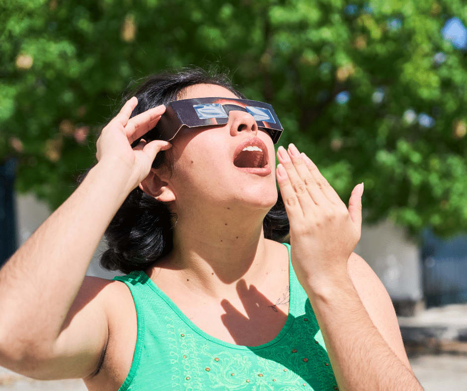 certified eclipse glasses. Regular sunglasses are not enough.