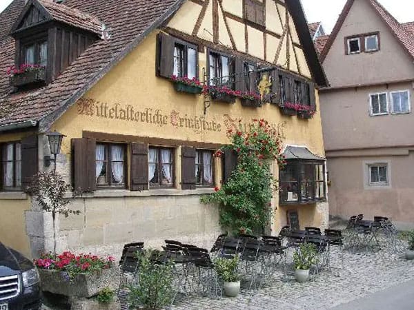 Dating back to circa 900, Zur Höll is the oldest and one of the most beautiful houses in Rothenburg. Meaning literally, to Hell, a warm welcome awaits as you may savour excellent wine (some of the best in Germany) and regional cooking in the old world atmosphere.
