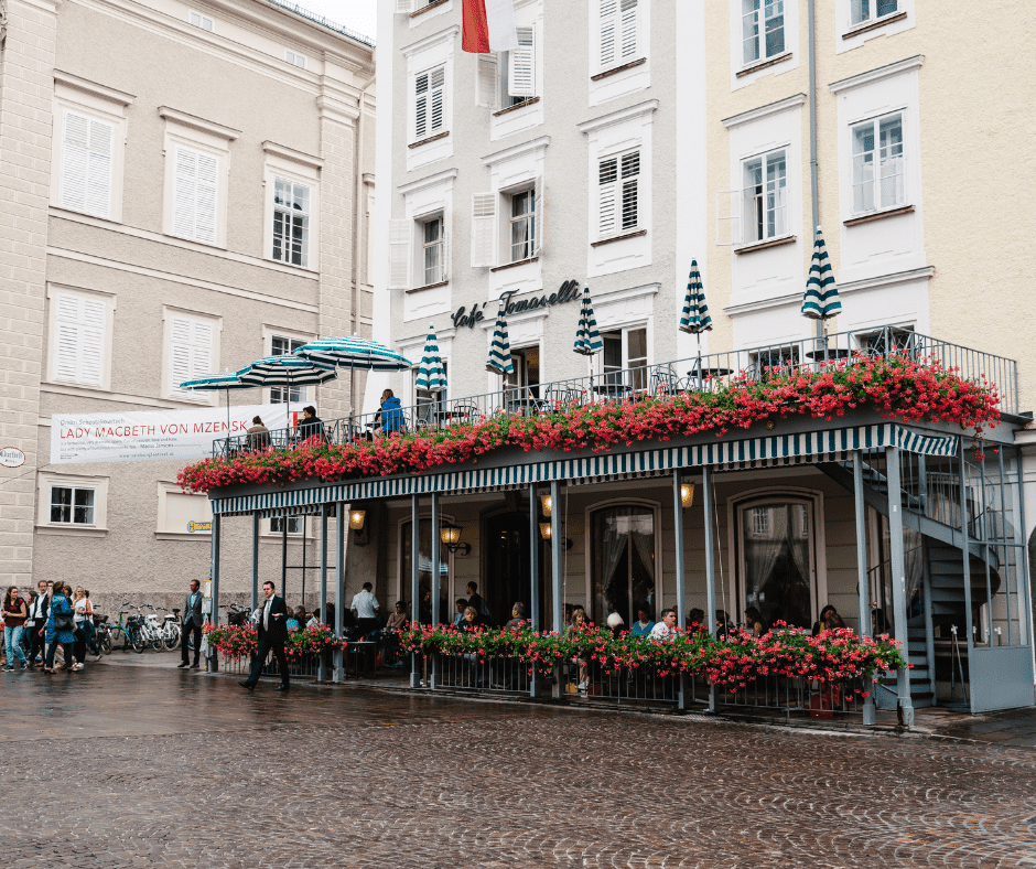 If you’re into coffee, cakes, strudel, and pastry…Cafe Tomaselli has been around since the 1700’s; Mozart was one of its earliest customers. It’s a great place to people-watch outside the front patio decorated with flowers.
