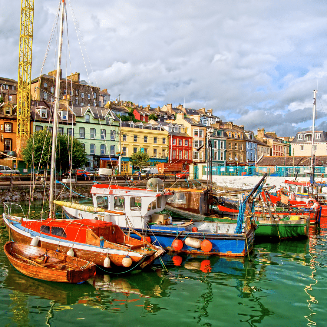 Step back in time at Cobh, the historic port town where the Titanic famously departed on its fateful voyage. Explore the Cobh Heritage Centre and wander the colorful waterfront lined with brightly painted houses.