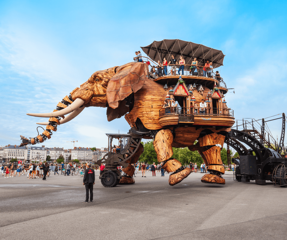 An incredible blend of art and engineering, Les Machines de l’รฎle features fantastical creations like the Great Elephant, a giant mechanical spider, and the Marine Worlds Carousel. This unique attraction is located on the former shipyards and pays homage to Nantes’ maritime history